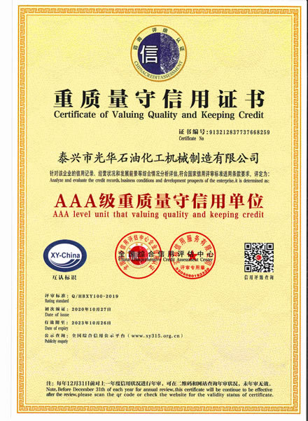 重質量守信用證書