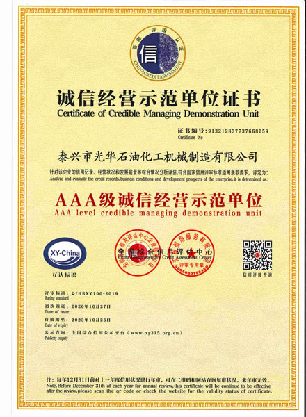 誠信經營示范單位證書