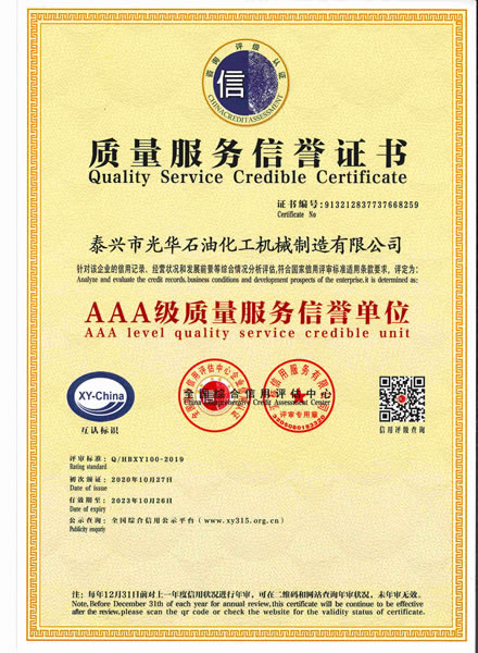 質量服務信譽證書